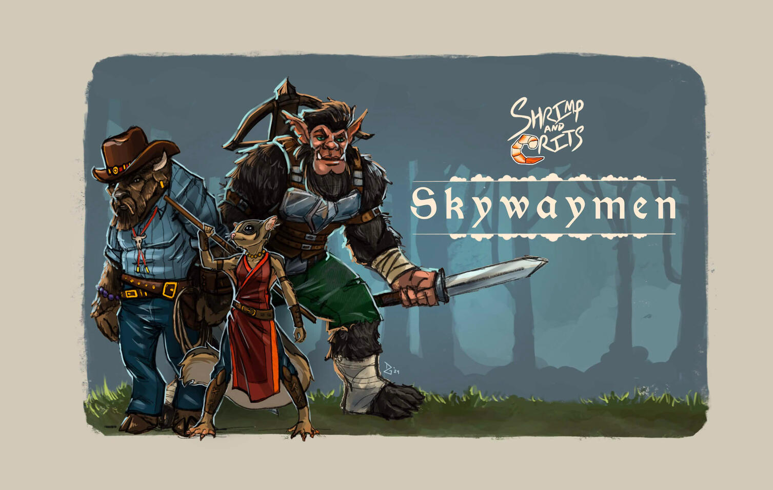 Shrimp and Crits is playing Ironsworn by Shawn Tomkin for our second season. Come nestle down by the fire and swap stories with us about the Skywaymen, the closest thing the world of Dania has to heroes anymore. Follow Cel, Cord, and Gree as they work for crumbs while traveling this old cursed world, all the while searching for their meaning out among the stars. Join us for this rustic fantasy journey through a folksy world of sky islands, poison fog, and many buried years of history.